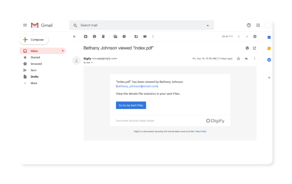 PDF File and document tracking is part of Digify’s suite of document security features. After sending the file using Digify, you will: