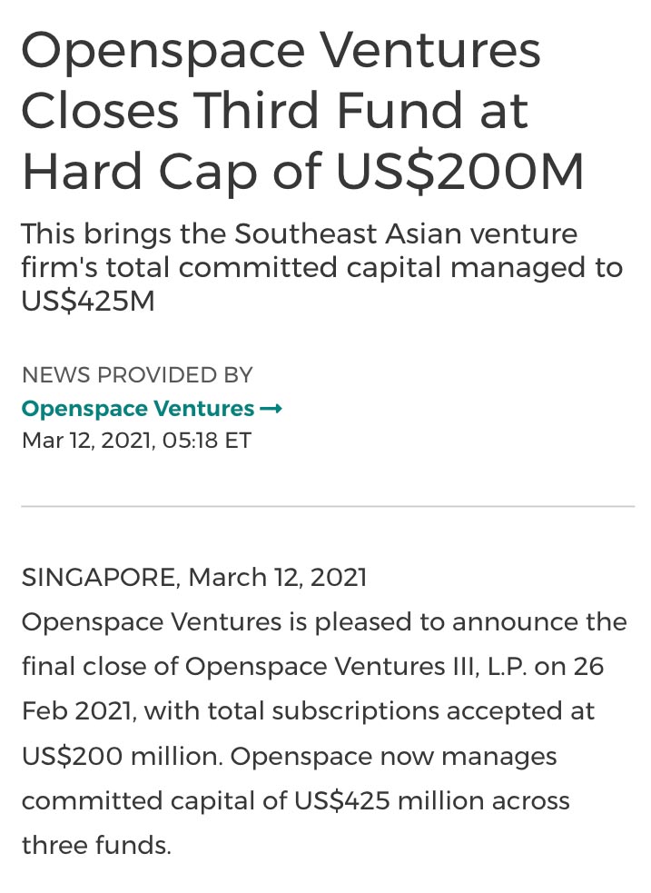 Openspace Ventures, a Singapore based venture firm, announced their third fund and final close with a total of US$200M using Digify.
