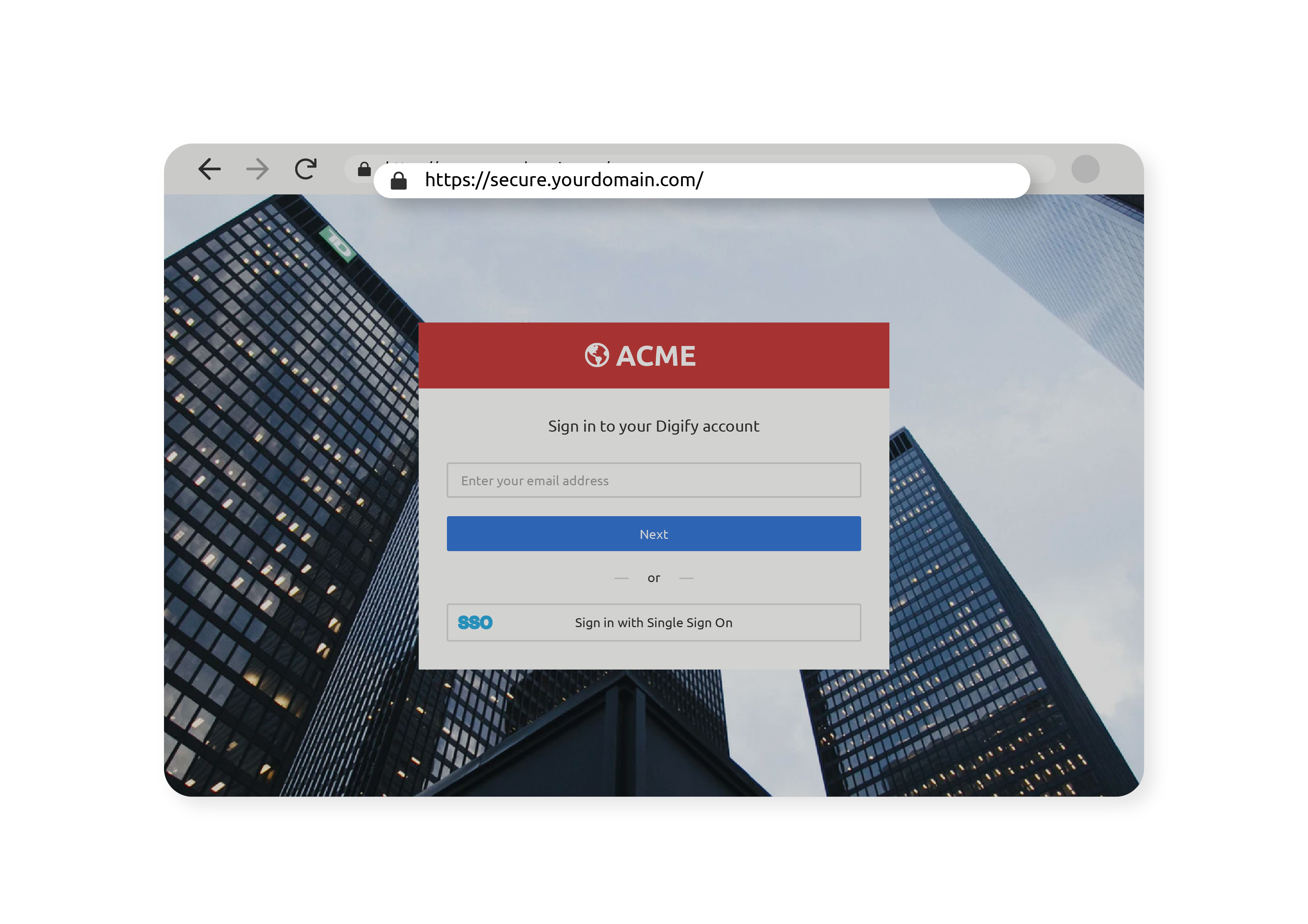 Give your customers and users the assurance that they are dealing with your organization when they access confidential documents. Our advanced branding lets you use your white-label company domain and URL for all logins and links sent via Digify.