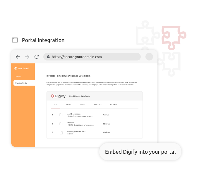 Designed for seamless integration, Digify’s API allows companies to quickly embed our award-winning document security and data rooms into any web application or website.